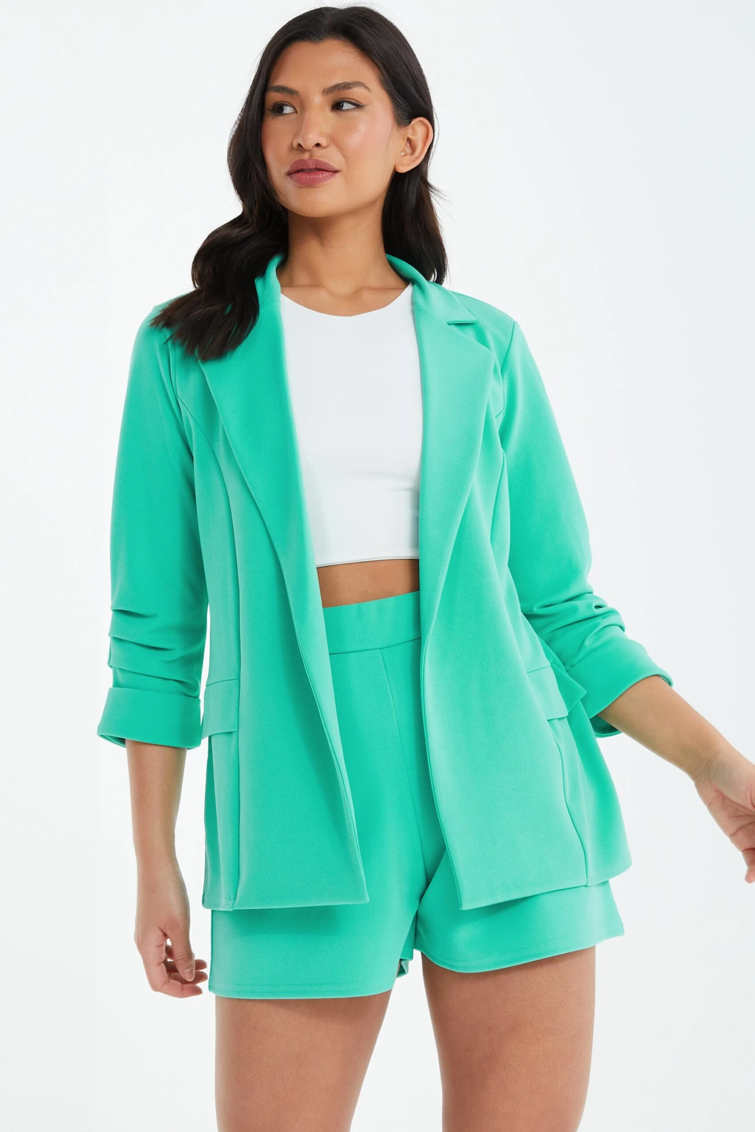 Mint Ruched Sleeve Blazer