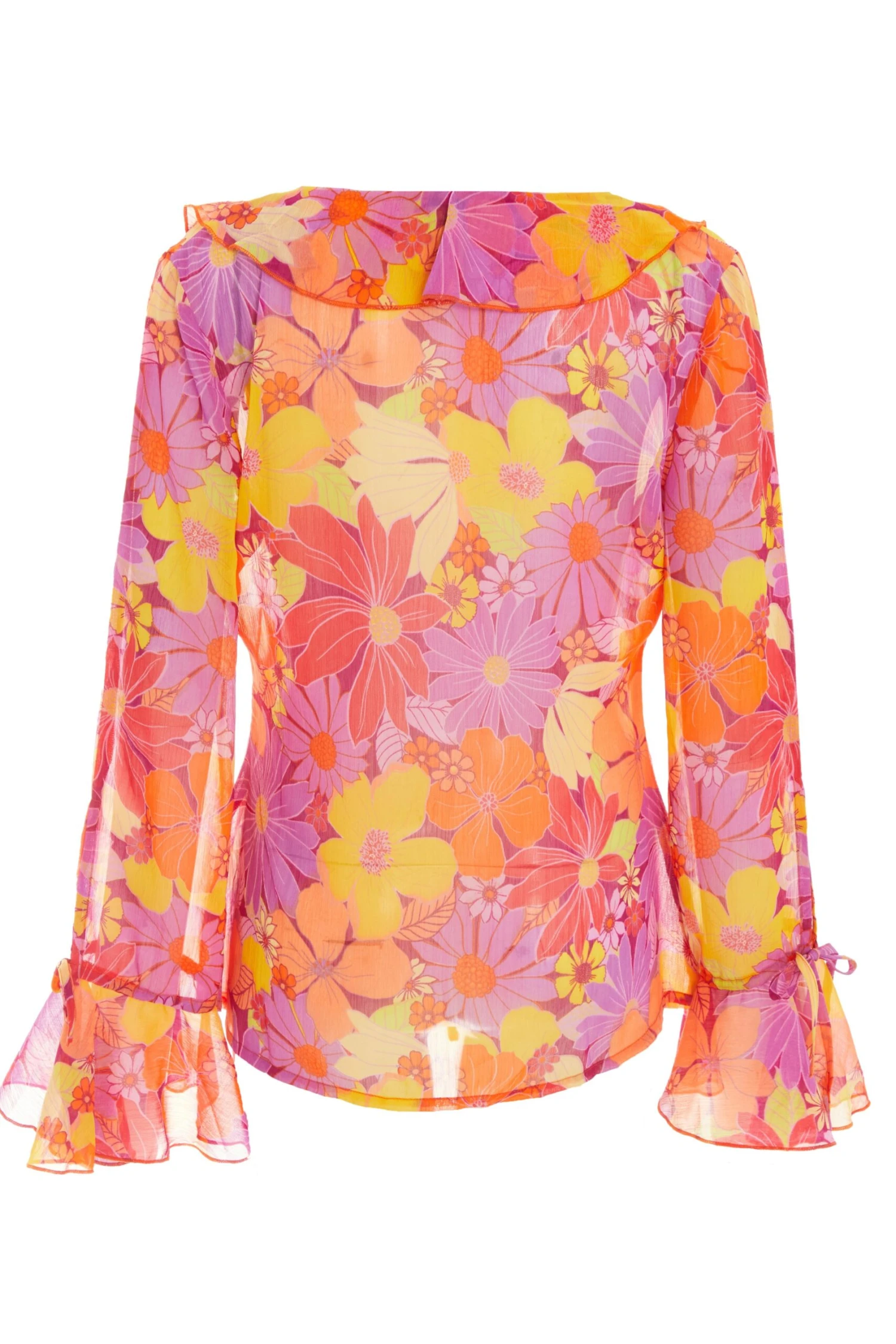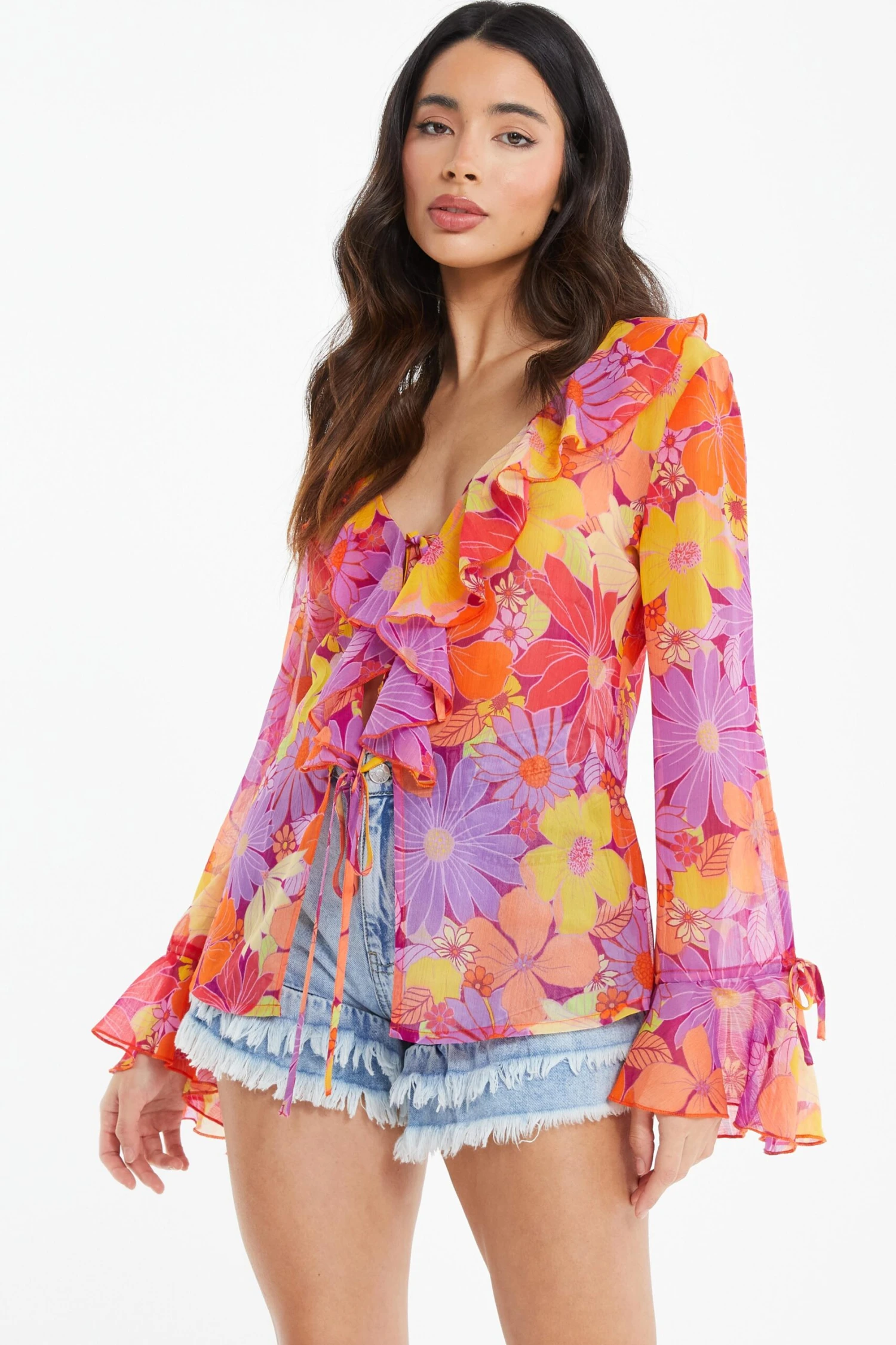 Pink Floral Tie Front Blouse