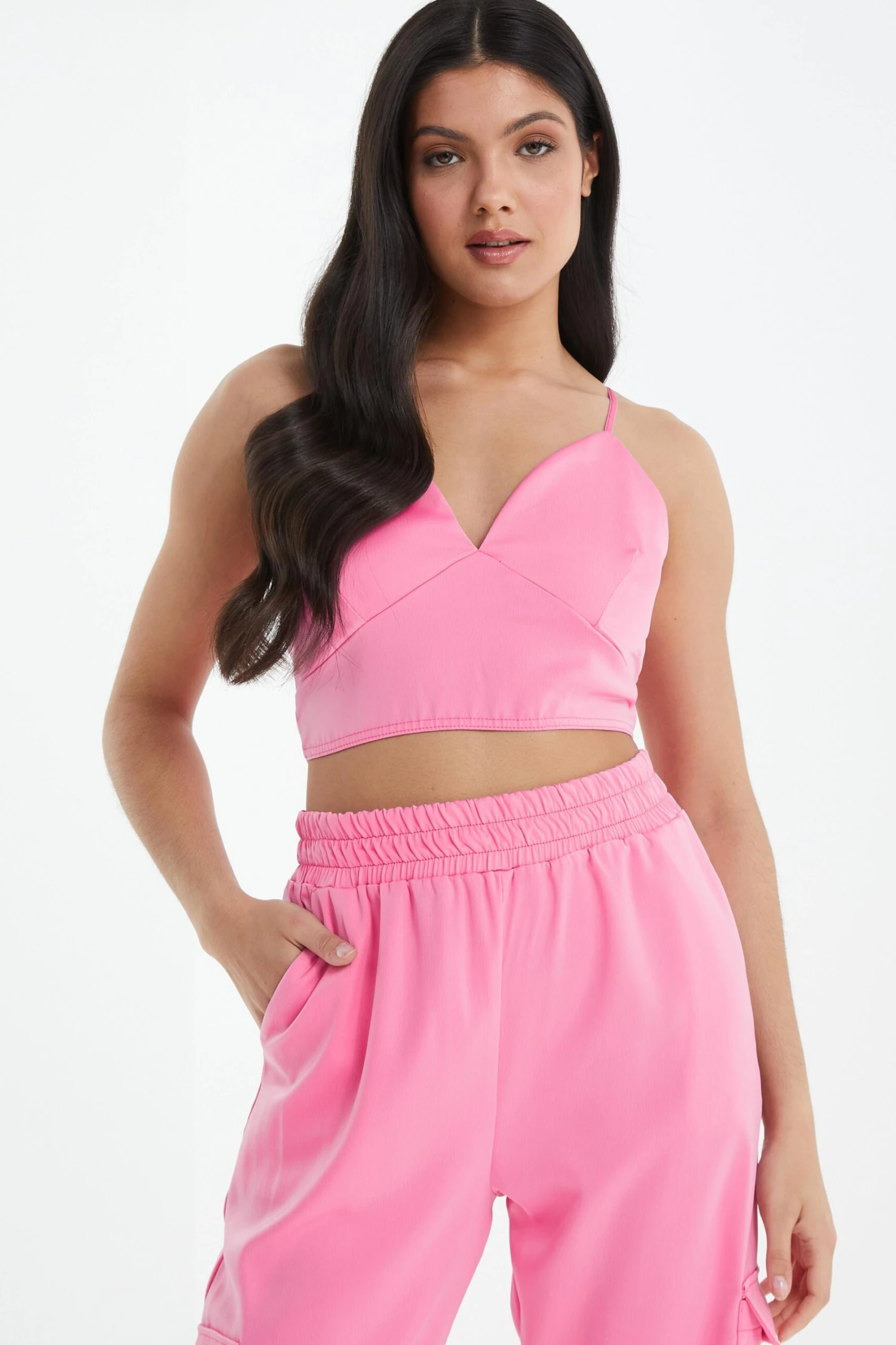 Pink Satin Tie Back Crop Top