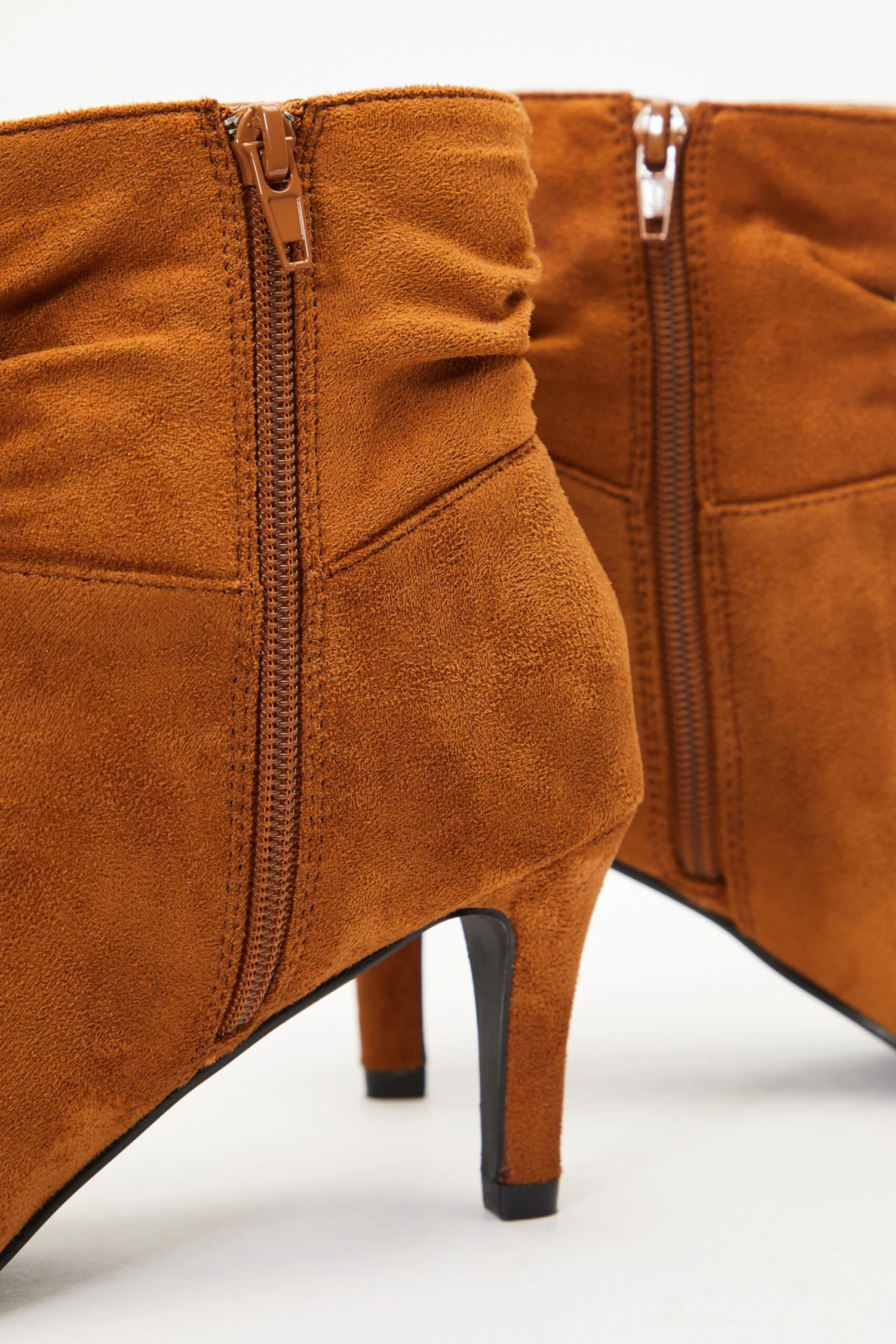 Tan Faux Suede Ruched Heeled Ankle Boots